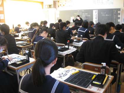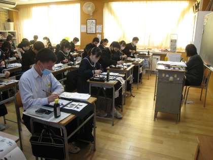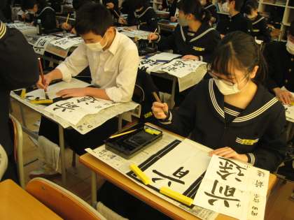 今日は、書き初め練習会がありました。3年生は「前途有望」です。生徒たちは皆、集中して取り組んでいました。