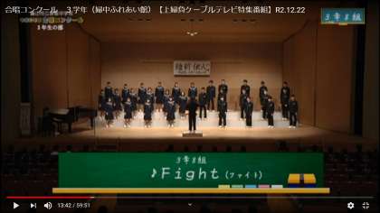 12月28日(月) 合唱コンクール3学年【上婦負ケーブルテレビ特集番組】を「生徒・保護者ページ」に掲載しました。