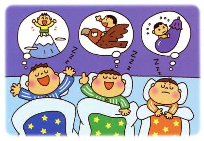 一般的に、1月2日の夜から1月3日の朝にかけてみる夢が「初夢」と呼ばれております。近年では、1月1日の夜〜2日の朝、もしくは(日付は関係なく)その年に初めて見た夢ともされております。