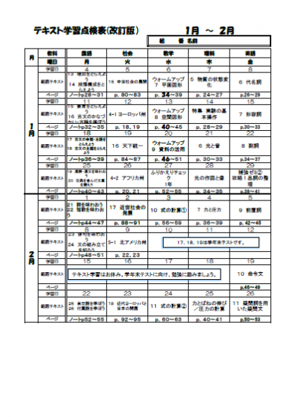 1,2年生は、学年のところをクリックしてください。3年生は、各自テキストやワークを利用して受検勉強を進めてください。過去のテストを見直しておくことも、おすすめです。