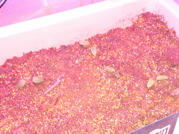 土に植えた種からは、4か所で発芽し写真のように育っています。養液栽培のポットにも、種を植えており、写真のように根が伸びています。