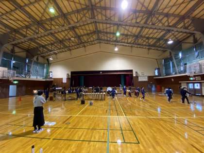 明日の本番(大ホール)を想定し、体育館で練習しました。