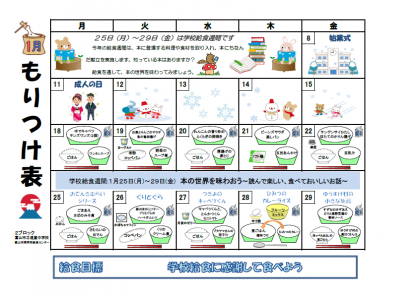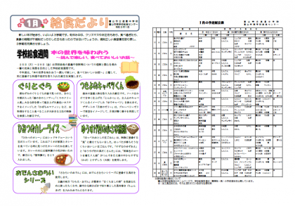 給食だより1月号をアップしました。盛り付けは、変更済みのものが載っていますので、ご確認ください。
