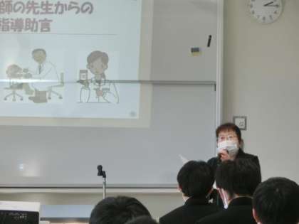 「この一年間で二度の臨時休業、大会や行事の中止や縮小等、様々な経験をしましたが、とにかく手洗い、マスク着用、換気、三密回避等の感染予防に努めることが大切できます。また、感染者に対する差別や偏見が富山県でもありましたが、個人個人の努力で防ぐことができます。今日のこの会を開催するに当たって、一生懸命準備してくれた保健委員のみなさん、積極的に発言してくれた生徒のみなさん、貴重なアドバイスをしてくださった学校医の方々、参加してくださったPTAの方々に心から感謝いたします。」
