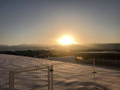 今週、1月20日(水)の朝は、マイナス5度まで冷え込み、自転車小屋には長いつららができていました。また、低温の済んだ空気のため、立山から登るきれいな朝日が撮影できました。