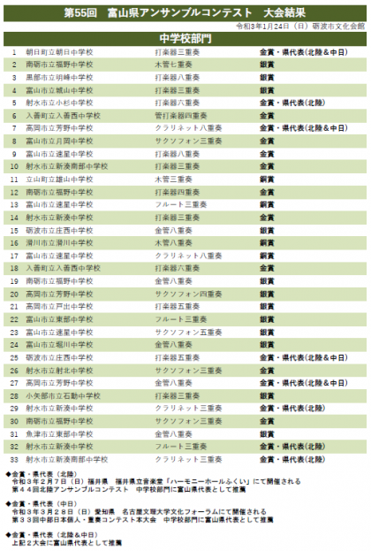 1月24日(日) 県アンサンブルコンテスト 結果