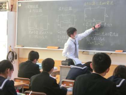 中段は、2年の理科です。直列回路に流れる電流について学習しました。