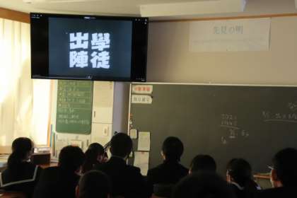 2年生は、4限に第1回目の平和学習を行いました。3学期から各教室に設置された大型モニターを活用し、全クラスで一斉に動画視聴の授業を行いました。