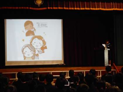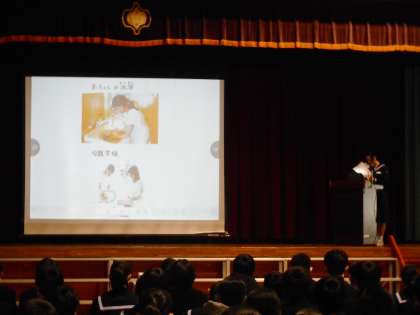 1年生は、5限に「身近な人の職業調べ」の学年発表会を行いました。各学級の代表者は、プレゼンテーションソフトを上手く使って発表していました。