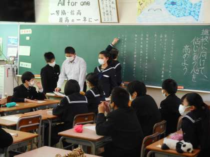 1年生は、5限に学級討議を行いました。本日は、「進級に向けて、信じ合う心を高めよう」「B棟から購買の差額が出てしまったことを、今一度振り返ろう」「信じ合う心とは、どのような心だろう」「学年で信じ合う心を高めるための標語をつくろう」の4つについて討議を行いました。