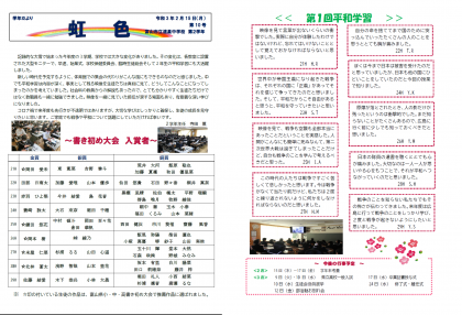 2学年だより第10号をアップしました。内容は、学年主任の巻頭言、書写大会入賞者の紹介、第一回平和学習の感想、今後の行事予定です。