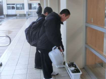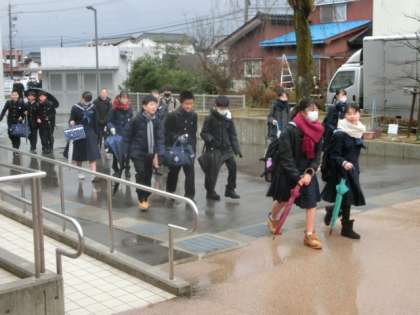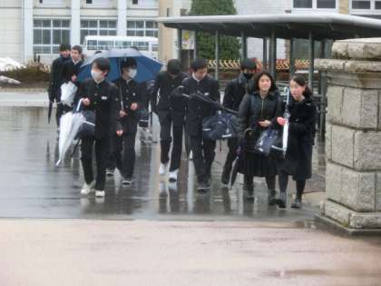 今朝は、登校する時間帯によって、状況が全然違いました。写真は8時前の様子です。8時過ぎてから一時的に強風が吹き、無残な姿になってしまった傘が何本もありました。