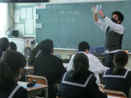 上段は、1年の数学です。円柱・角柱と比較しながら円錐・角錐の体積の求め方について学習しました。