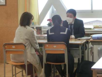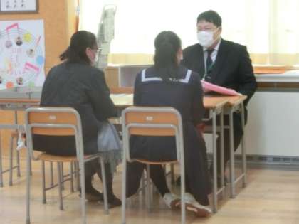 大雪の中ですが、予定通り進路懇談会を行いました。県立高校一般選抜の願書を書く重要な懇談会ですので、延期ができません。