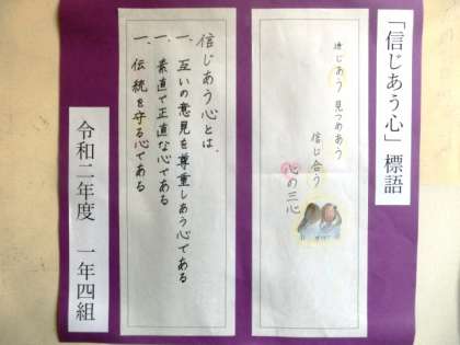 2月21日(日) 1年「信じあう心」標語 その2