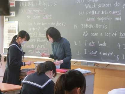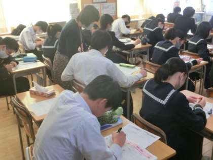中段は、2年の英語です。学年末考査の解説を聴いて復習しました。