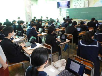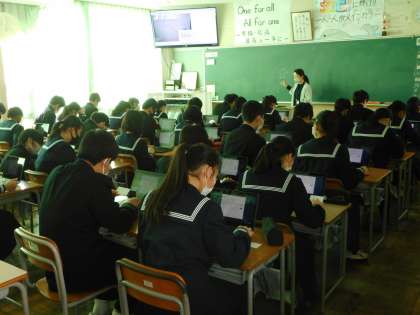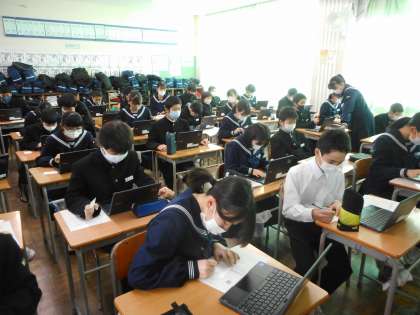 1年生は、4限にタブレットの初期設定を行いました。本日は、タブレットの立ち上げ、パスワード変更、Google Classroom への参加までを行いました。