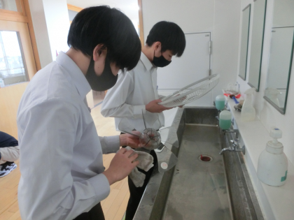 今日は、2年生の担当でした。2年生は扇風機と窓、1年生はイスの脚の裏や床を担当します。1年生は、5日(金)に行います。