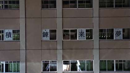 県立高校の一般入試を一週間後に控えた3年生にエールを送ろうと、昨夜のうちにC棟の窓にメッセージを貼りました。
