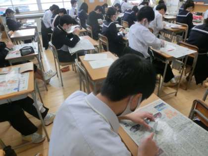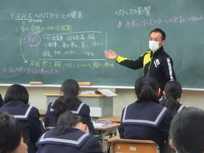 3月3日(水) 授業風景 公開日 2021/03/03 更新日 2021/03/03 全学年 上段は、1年女子の保健です。ストレスへの対処と心の健康について学習しました。 中段は、2年の理科です。フレミング左手の法則について学習しました。 下段は、3年の美術です。篆刻も、いよいよ最終段階に入っています。