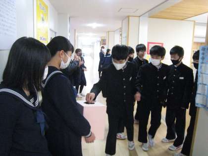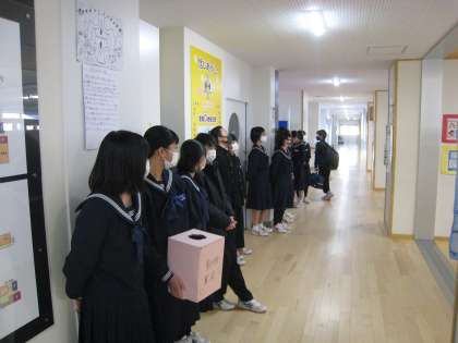 ボランティア委員会 動物愛護募金の活動 公開日 2021/03/07 更新日 2021/03/07 速中生徒会 3月1日(月)〜5日(金)の期間、ボランティア委員会が動物愛護募金を行いました。 委員だけでなく、委員ではない生徒も参加しました。速中生の思いやりの気持ちが、少しでも多くの動物に届くことを願っています。