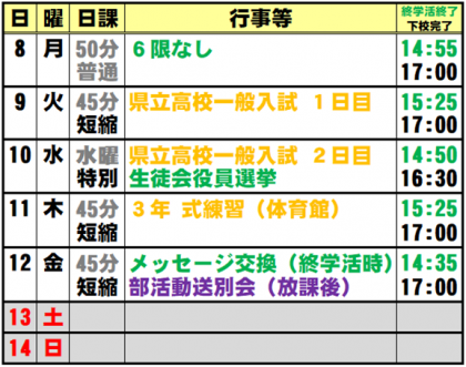 3月7日(日) 週予定
