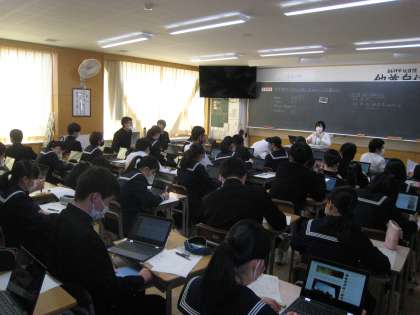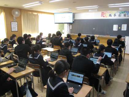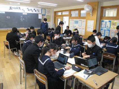 2年生は、5,6時間目にタブレットを使って修学旅行の事前学習を行いました。