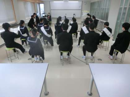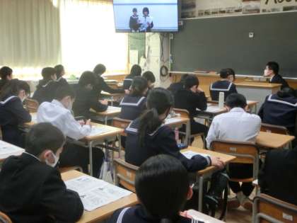 5,6限に前期生徒会役員選挙の立ち会い演説会を行いました。今回も被服室からの中継を各教室で視聴するという形で行いました。