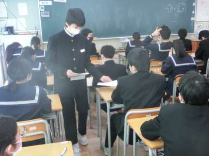 演説会後、各クラスの選挙管理員会が1人1人に投票用紙を配布しました。記入後、委員が1人1人の用紙を集めました。