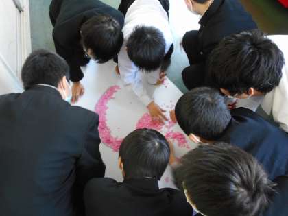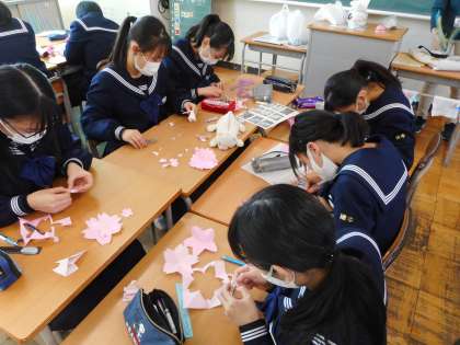 3月11日(木) 1年 卒業生に向けた制作 公開日 2021/03/11 更新日 2021/03/11 1年生 1年生は、6限に卒業生に向けた制作活動を行いました。各クラス男女とも真剣に制作に取り組み、素晴らしい出来上がりとなりました。