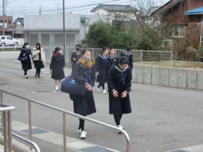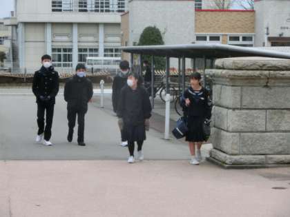 3月15日(月) 登校風景 公開日 2021/03/15 更新日 2021/03/15 全学年 今週最初の登校。曇り空ではあるものの、寒さを感じることは、ほとんどなくなってきました。玄関では、生活向上委員会の1年生が、爽やかな挨拶で全校生徒を出迎えました。