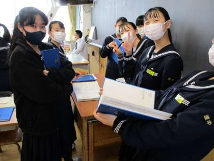 卒業アルバムが配付されました。生徒たちは、友人や先生からメッセージをもらおうと他クラスを行ったり来たりしていました。