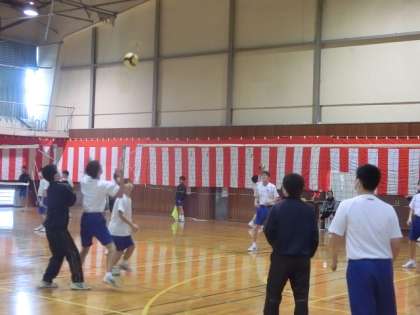 ▼ 2年男子の体育です。バレーボールをやっています。