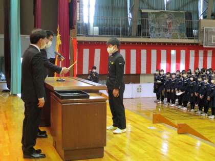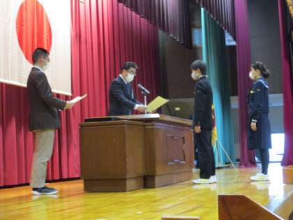 修了証授与式では、代表生徒が修了証を受け取りました。