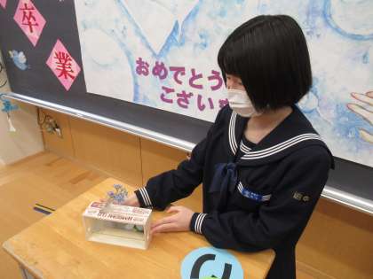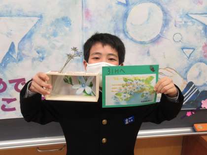 放課後、生徒会執行部は、後期から育ててきたブルースターを、3年教室にお届けしました!