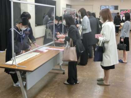 8時25分から保護者受付が始まりました。アクリルボードを設置したり、アルコール除菌に協力いただいたり、新型コロナウィルス感染症の予防に努めています。