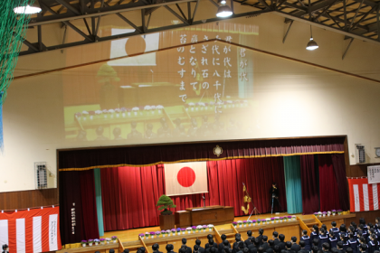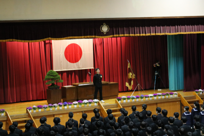 ▲ 校訓唱和 代表生徒以外は、マスク着用で唱和しました。
