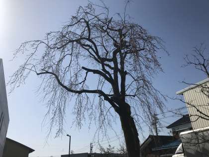 しだれ桜の蕾(つぼみ)が色づき、ふくらんできているのが確認できました。