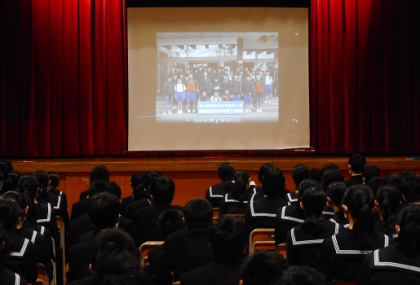 1年生は、2限に最後の学年集会を行いました。最初に、各学級のリーダーが1年間の振り返りを行い、次に3学期のMVPを発表しました。