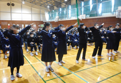 最後に、各学級のリーダーたちが、1学年スタッフにエールを贈りました(下段)。