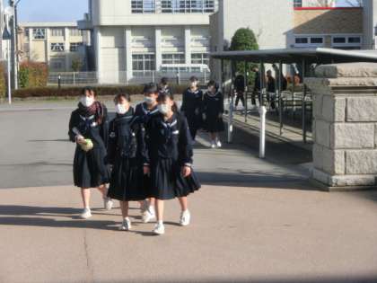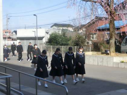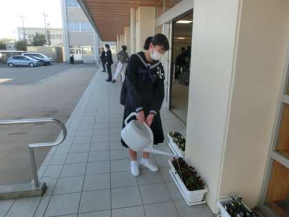 3学期最後の登校日は、日差しが心地よい朝となりました。ボランティア委員会の生徒は、花の水やりを行いました。
