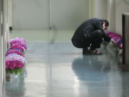 卒業式のときにステージ上に置いてあったフラワー・ポット。今はB棟1階廊下で入学式での出番を待っています。春休みの間は、日直教諭が水やりを行います。