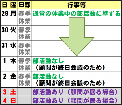 3月28日(日) 週予定
