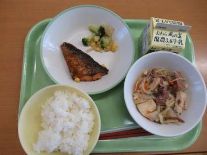 牛乳 ごはん さばの塩焼き 大根サラダ すき焼き