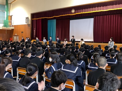 最後に学年主任から、自らの体験を交えながら、学習へのモチベーションを高める話をしました。