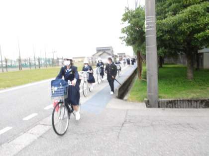 今日はとても風の強い朝になりました。自転車通学の生徒は特に注意が必要です。特に事故もなくよかったです。
