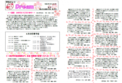 2学年だより第1号をアップしました。内容は、学年主任の巻頭言、2学年担当教員からのメッセージ、4月の行事予定です。