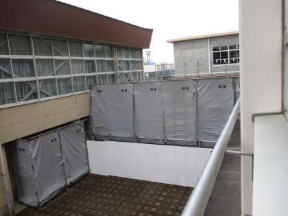 新体育館と本館を繫ぐための通路の建設に伴い、現在の体育館への通路を新設する工事が始まりました。そのため、現在、多目的ホールBから体育館への入り口は通行止めです。