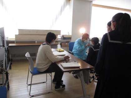 本日5限に、全学年で眼科検診が行われました。写真は3年生の様子です。