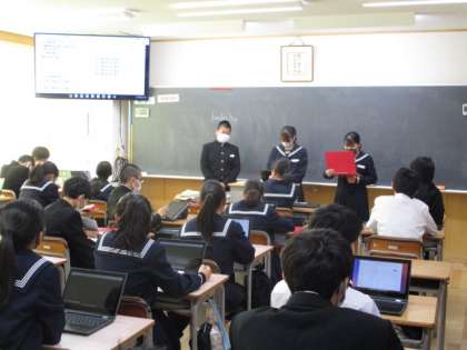 議案書はタブレットパソコンで各自見ています。写真は2年生の様子です。